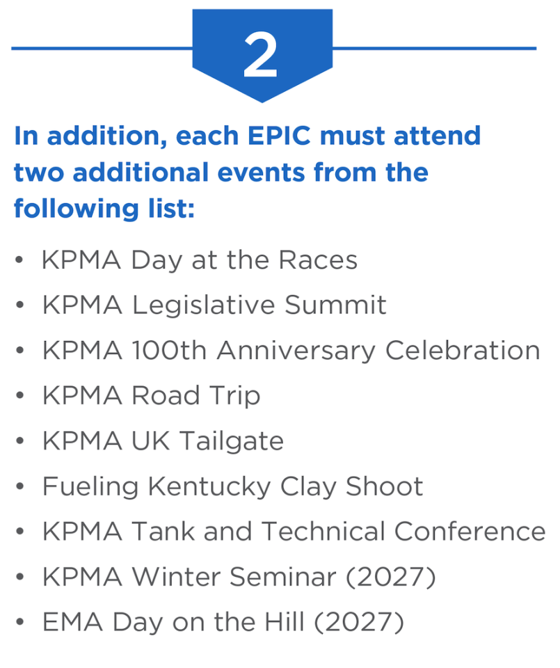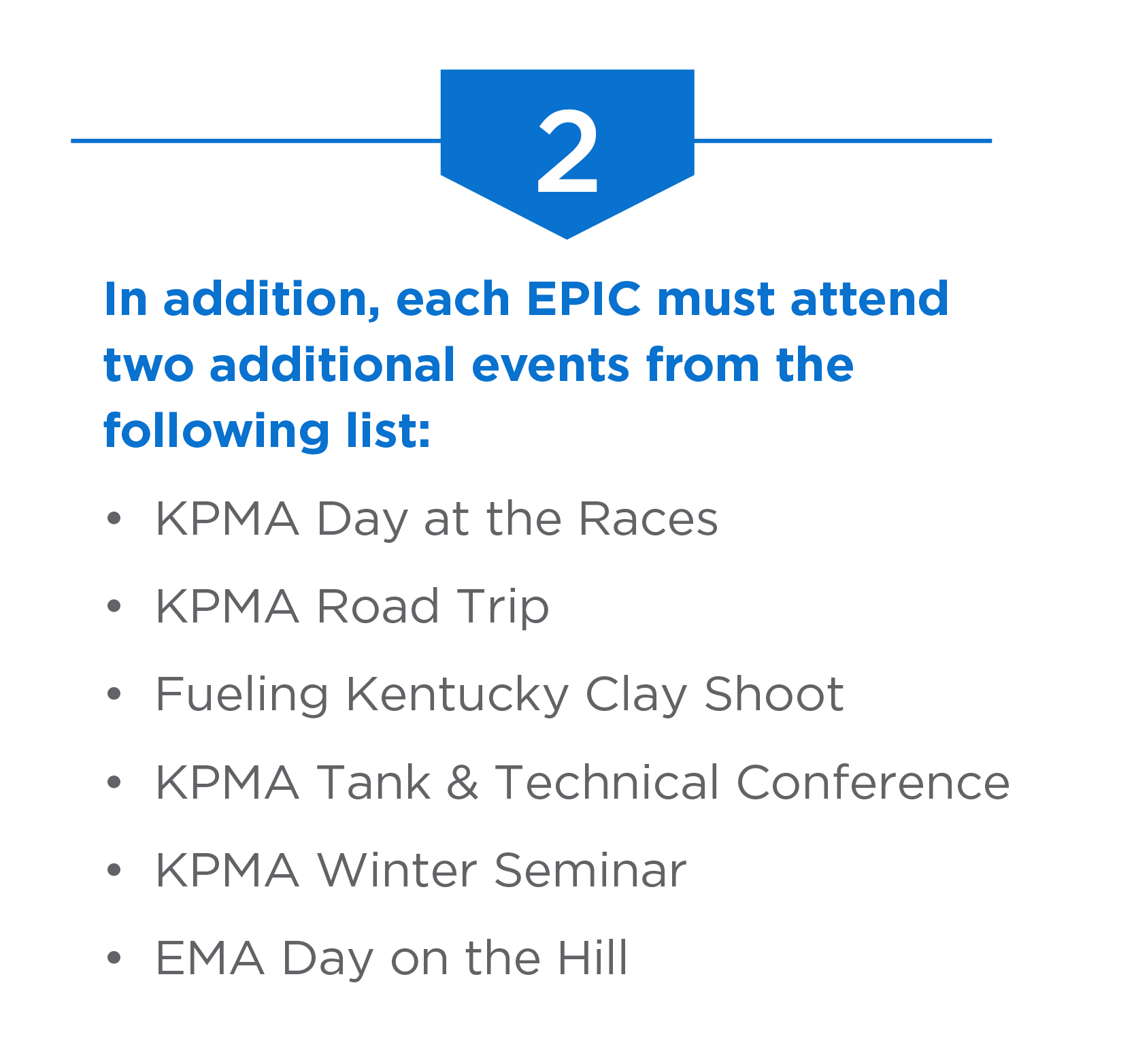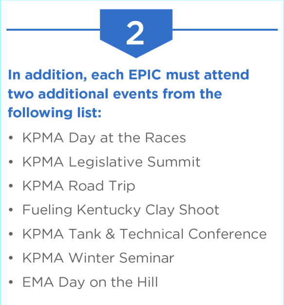 The KPMA EPIC Leadership Development Program offers those in the fuel and convenience industry a behind-the-scenes look with exclusive events such as facility tours, advocacy events and the KPMA's role with our industry. This year long program can benefit all KPMA members, regardless of years of experience. Whether a member has been part of the industry for one week or ten years, everyone taking part in this program will have unique opportunities that expand their industry and association knowledge.