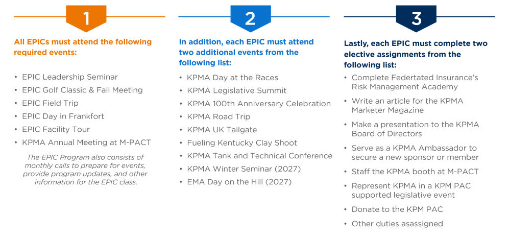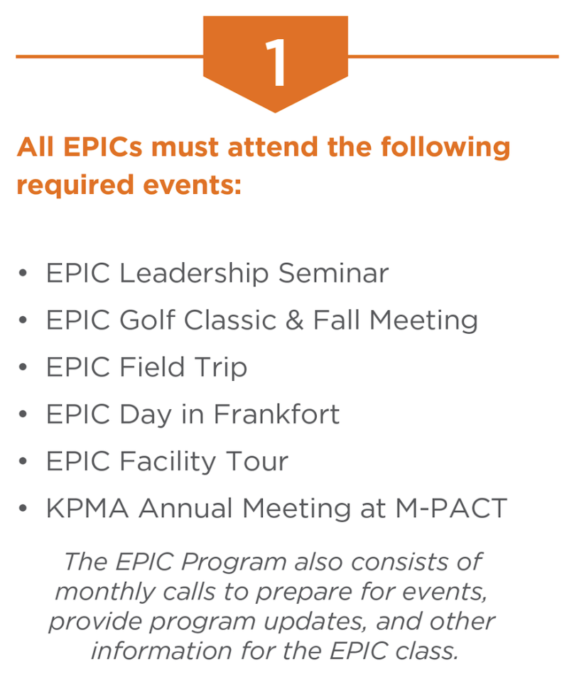 The KPMA EPIC Leadership Development Program is an initiative exclusively for and open to all KPMA members. The EPIC Program was created to develop future KPMA leaders, increase member engagement, and enhance the overall member experience. Participants will graduate from the EPIC Program with a greater knowledge of the KPMA and our industry, become better equipped for future leadership roles, and gain a personal network of fellow EPICs to enhance their industry connections.